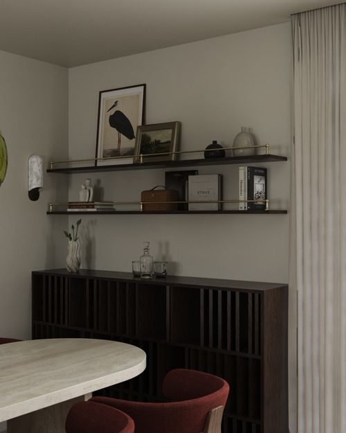Dutch House embraces a fresh, modern aesthetic highlighted by bold choices like Calacatta Violetta marble. The design focuses on clean lines, open spaces, and sophisticated contrasts between materials, creating a light, airy interior that feels both luxurious and inviting.
